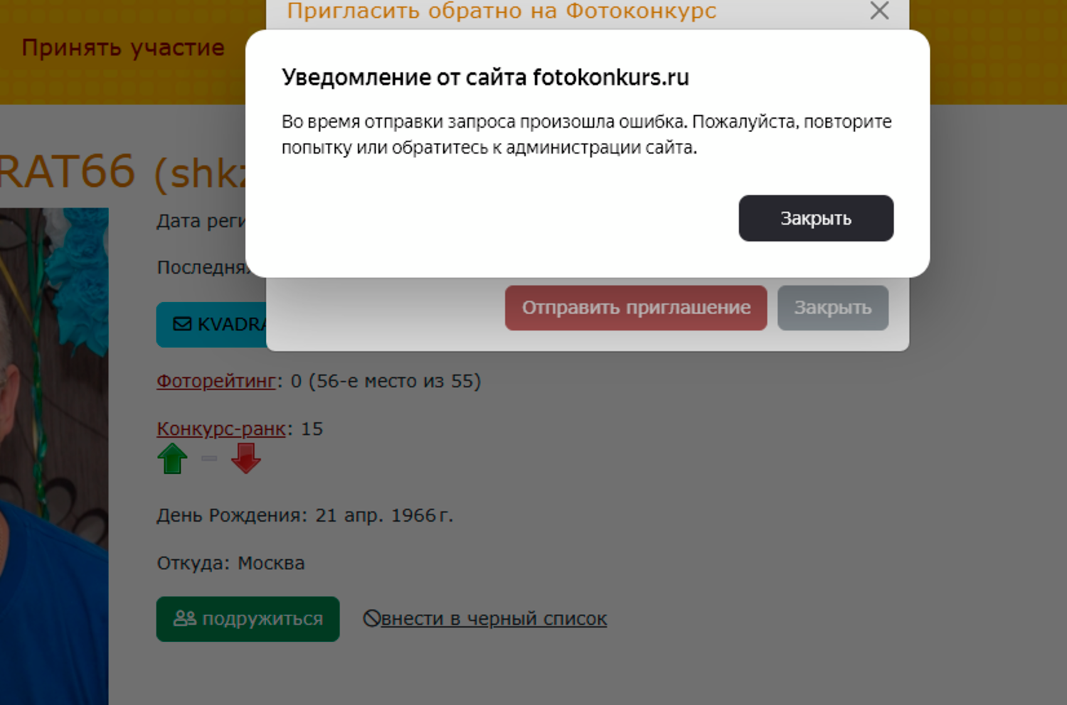 Пишем сюда только проблемы, баги и неудобства в работе с сайтом fotokonkurs.ru и идеи, которые разнообразят сайт в плане контента. По возможности прикладываем скриншоты ошибок и некорректного отображения сайта!
