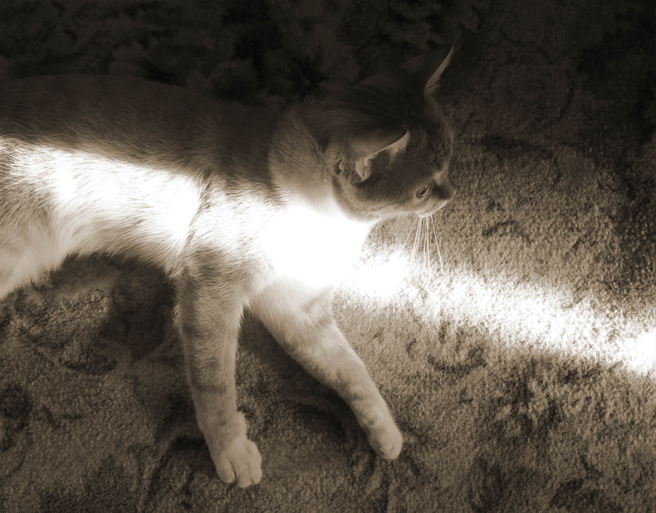 Вот аналогичный пример (кот мой, фото моё), вроде и нет луча, а вроде и луч)
