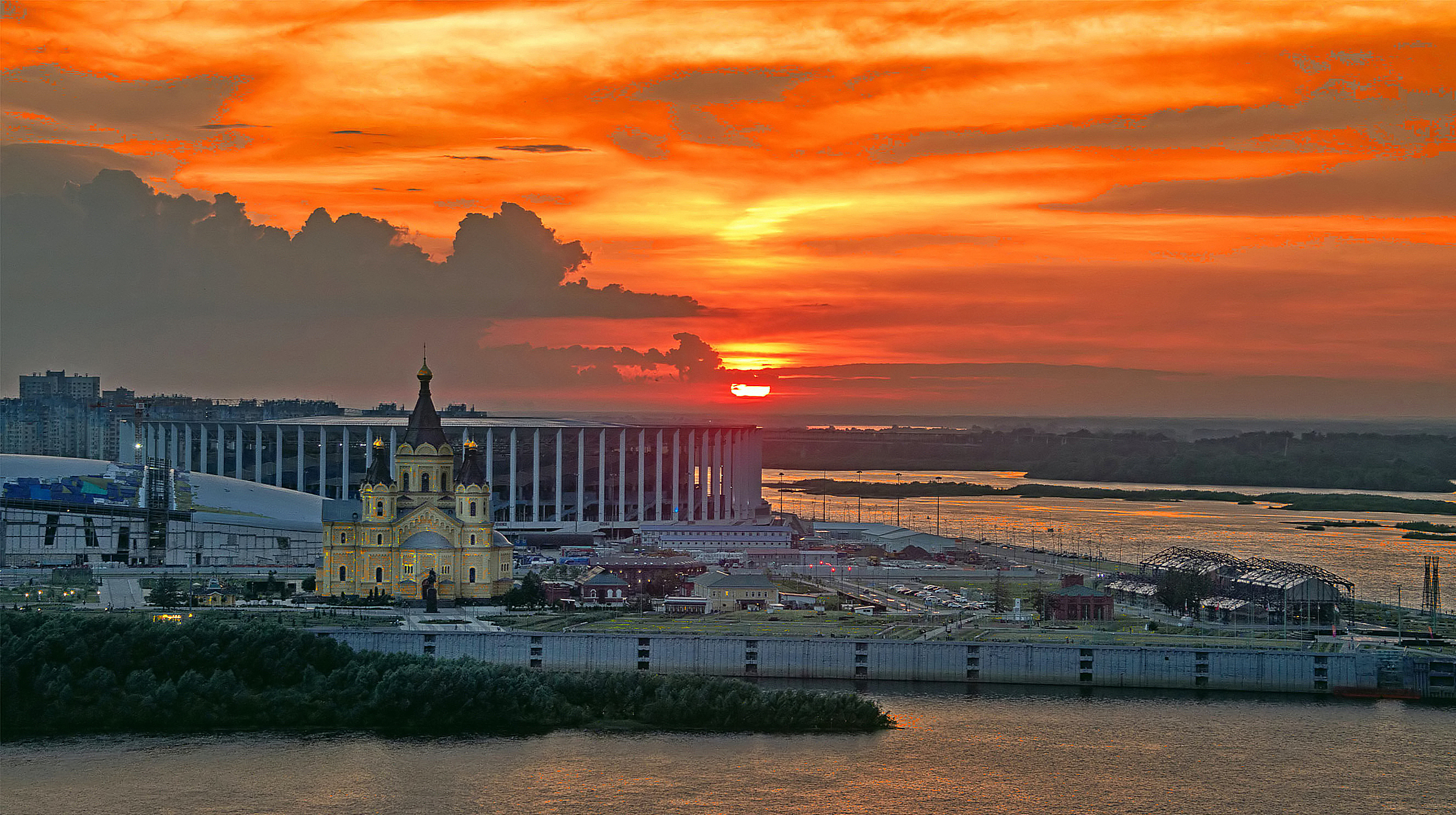 Красивое место, удачное для съёмки закатов в Нижнем Новгороде, но обработка странная (для меня).