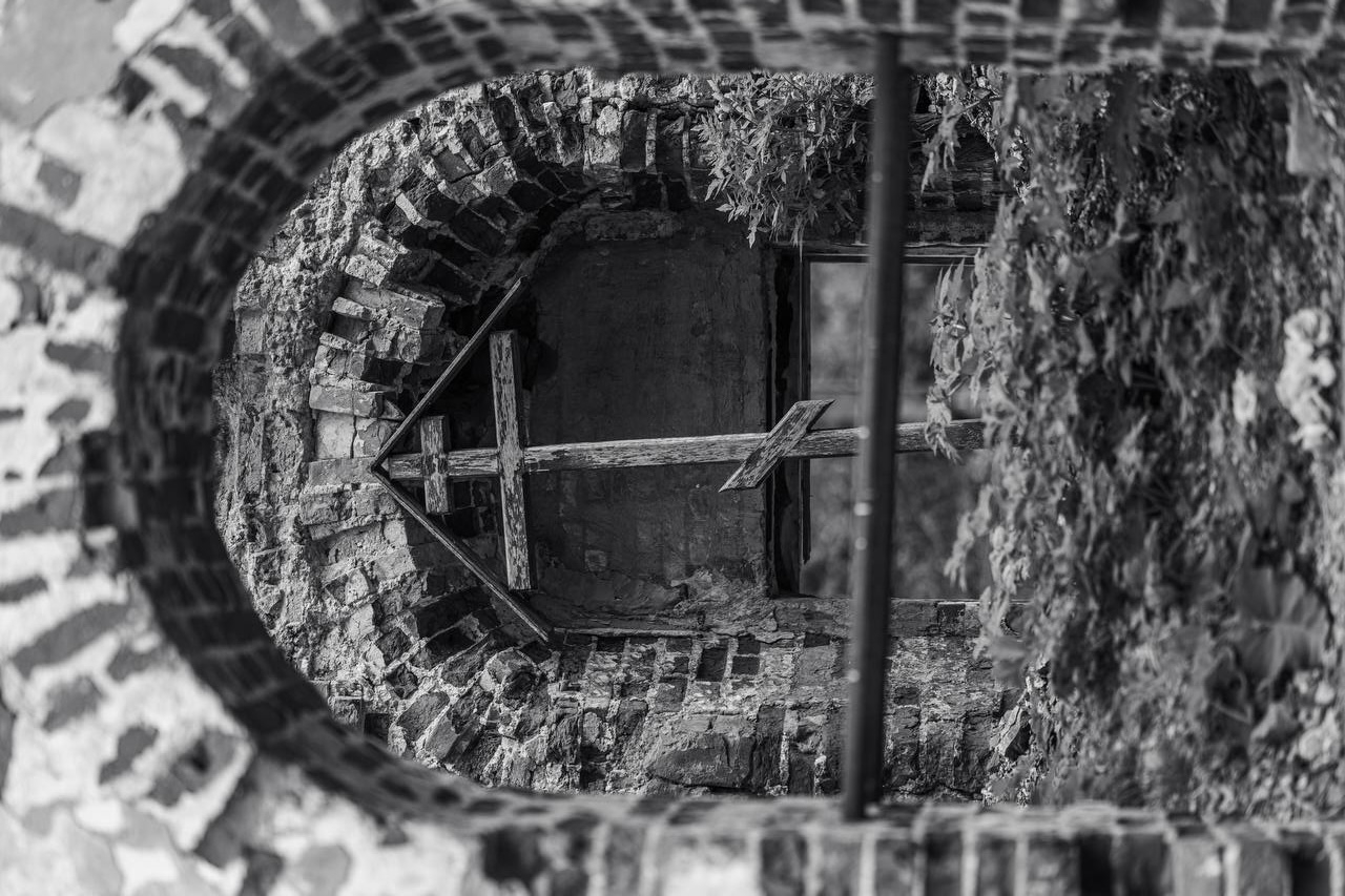 Крест в алтаре заброшенного храма