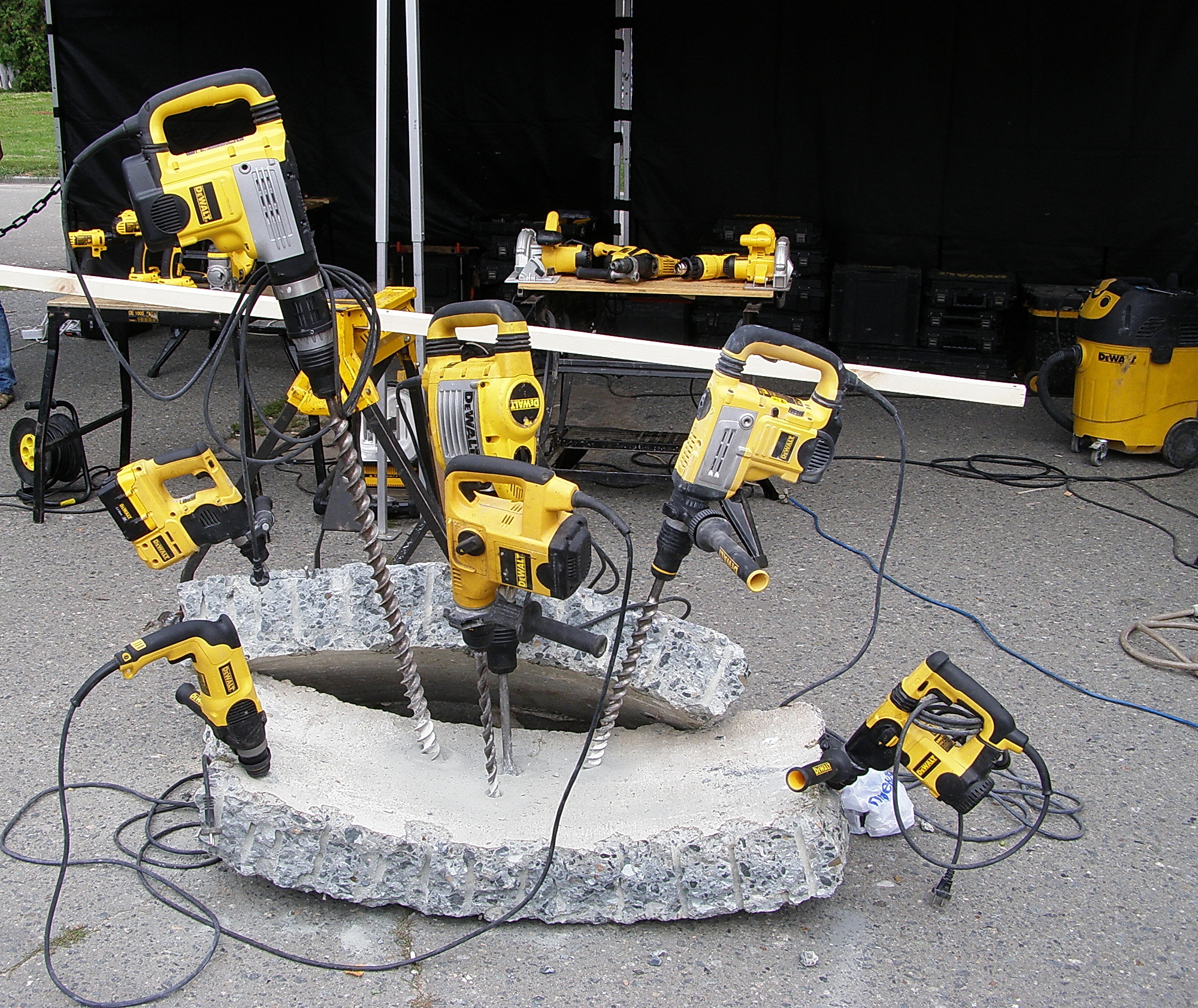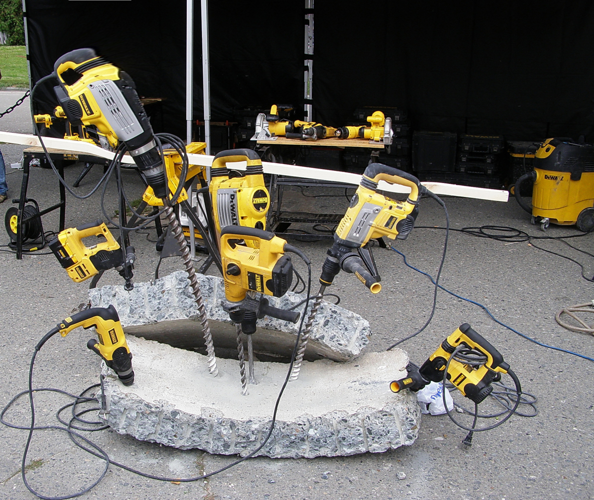 Скажем... только мощный ручной инструмент премиум класса, такой как DeWalt, может справиться с таким жёстким бетоном.