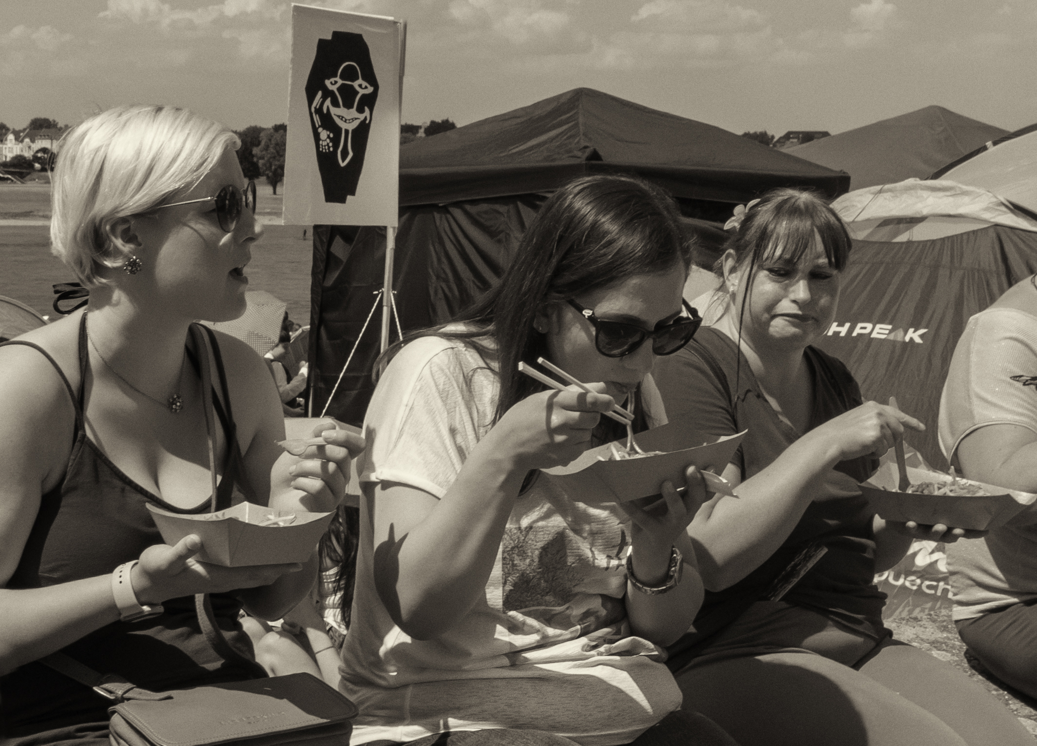 Смотрю фото, не читая пока название, и пытаюсь определить показанный порок. Три женщины на каком-то (возможно международном) мероприятии. Возможно, на длительном мероприятии, так как организаторы всем дали поесть в одинаковых тарелках одинаковую еду. Одна женщина (в центре) ест палочками. Может быть она китаянка (в очках не поймёшь наверняка). Две другие едят вилками. Одна из них смотрит, как средняя управляется с палочками. В чём же порок? Еды у них небольшое количество, да и фигуры их говорят, что они не склонны к чревоугодию. Смотреть, как другие едят тоже, вроде бы не грех. Сдаюсь. А у автора… Не согласен. Чему ж она завидует? Еда у всех одинаковая. Что палочками умеет есть?