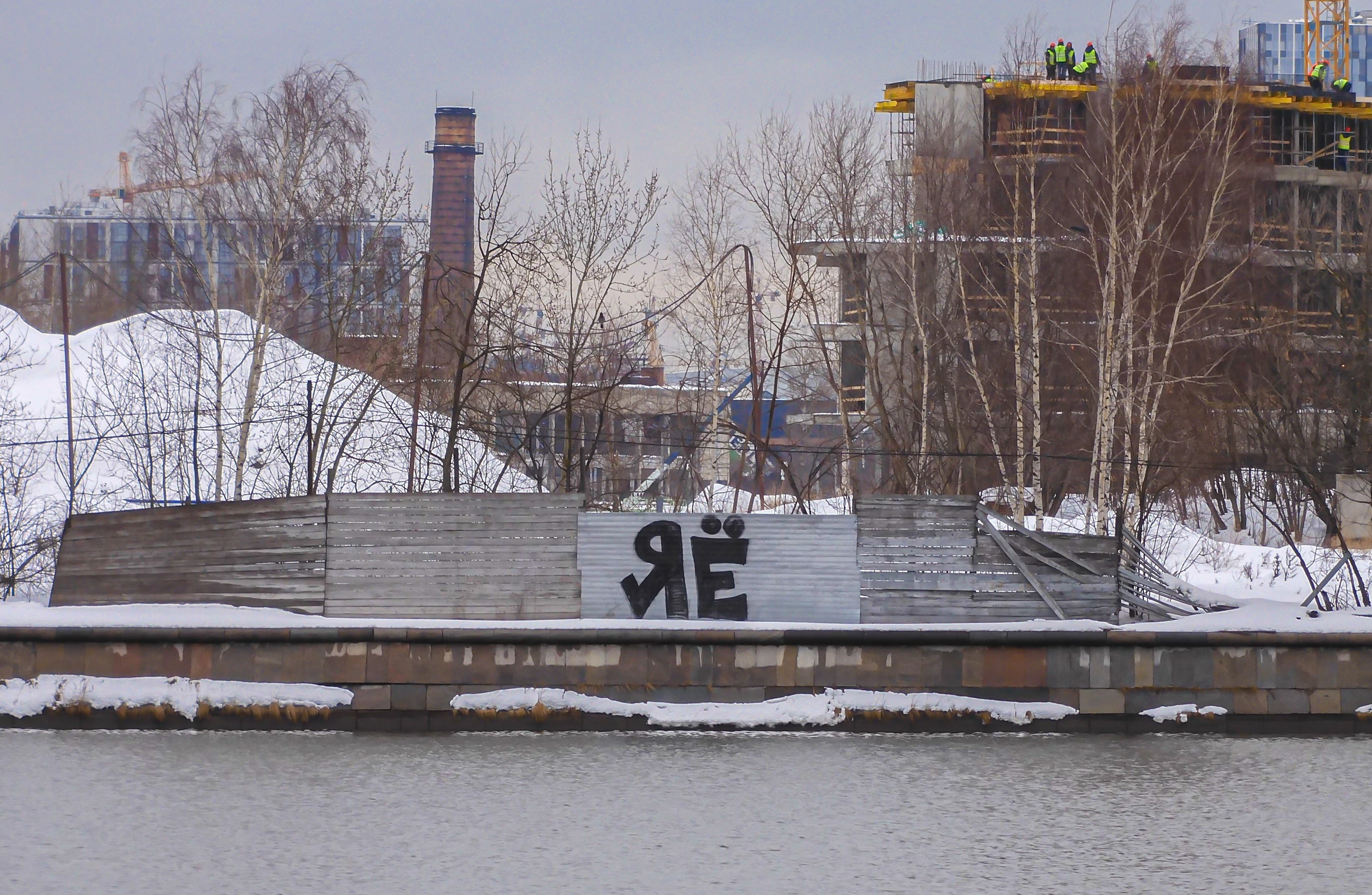 Это набережная Марка Шагала в Москве. Застройка бывшего з-да ЗИЛ. Снимала давно, в разгар застройки, заинтересовали ,,буковки."))) Забора, скорей всего, уже нет, все почти застроили. И, спасибо за внимание, Екатерина.