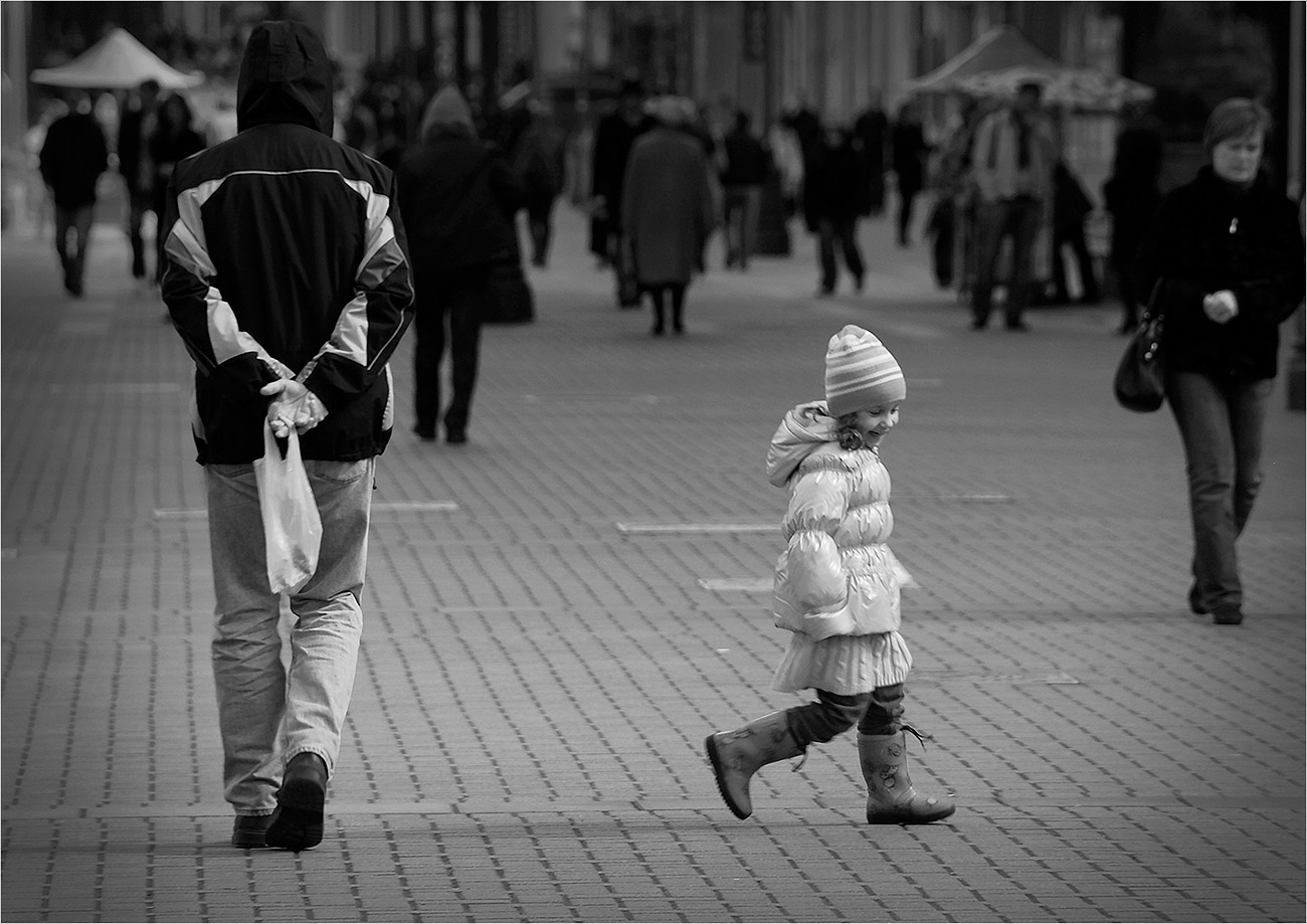 Зацепила Ваша работа, Капитан! Любуюсь на маленького человечка, свободного в своём выборе и ещё не успевшего влиться в этот монотонный серый поток.