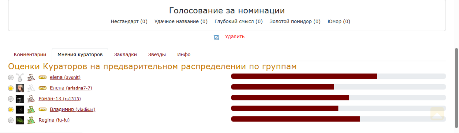 Оценки Кураторов на предварительном распределении по группам