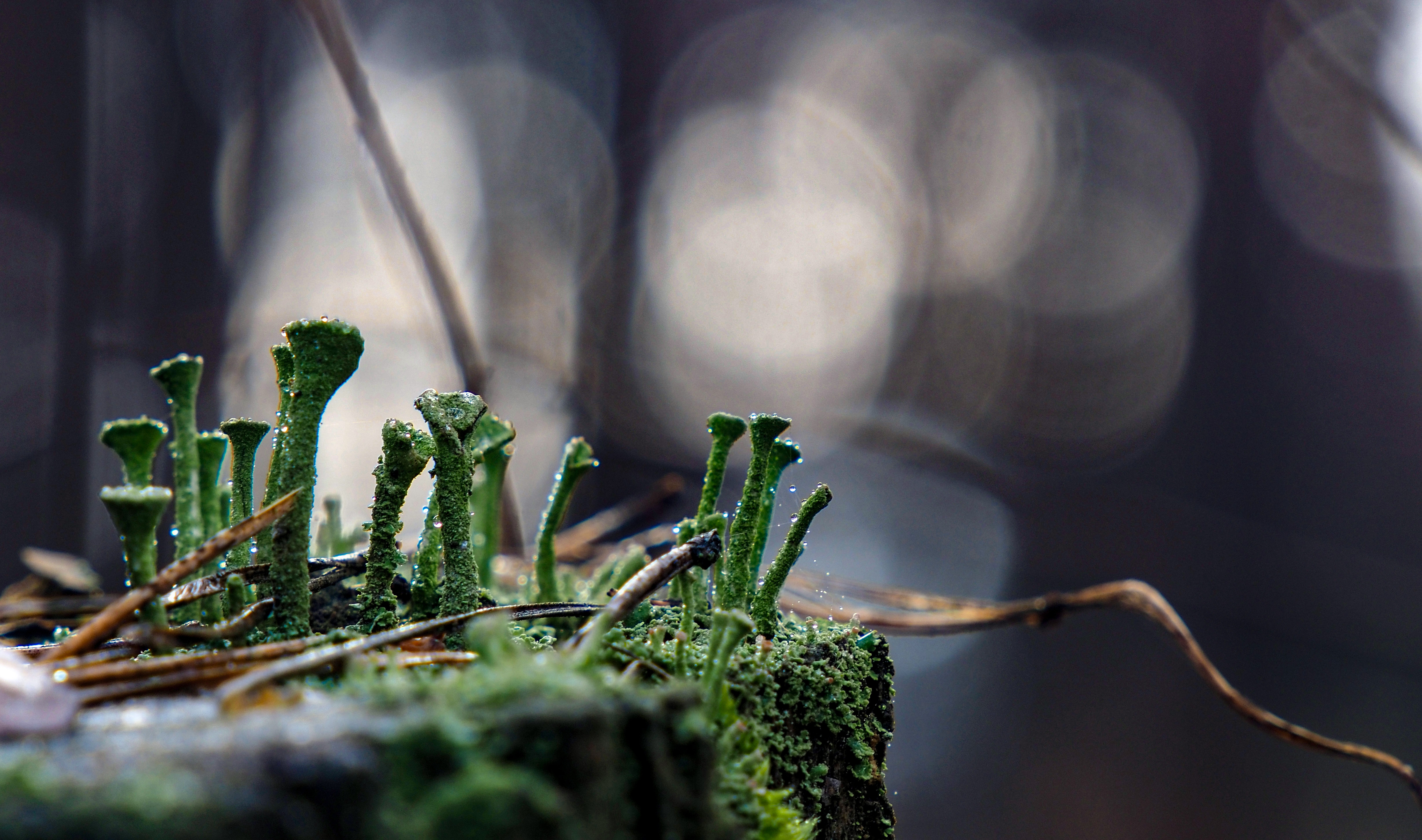 Насколько мне известно, это не гриб в чистом виде, а кубковый лишайник. Хотя если брать по науке, то это симбиоз гриба и микроскопических зелёных водорослей... Как бы то не было работа хорошая, мне нравится, но с оценкой повременю...