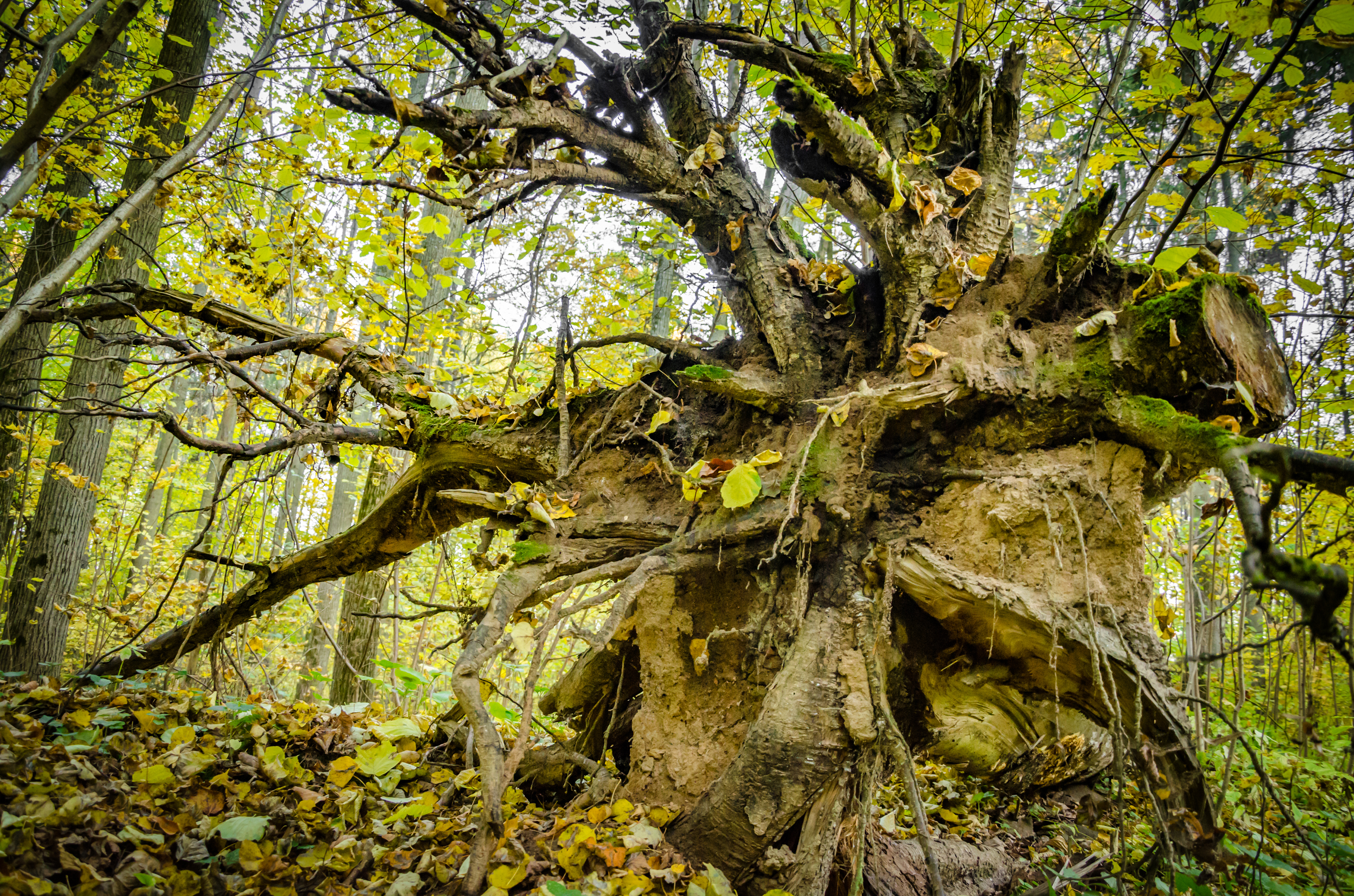 Если почтеннейшая публика признаёт только классические пни - спилы ствола - Выворотень любезно добавил к своему "натюрморту" и этот элемент. Смотри справа чуть выше середины.
