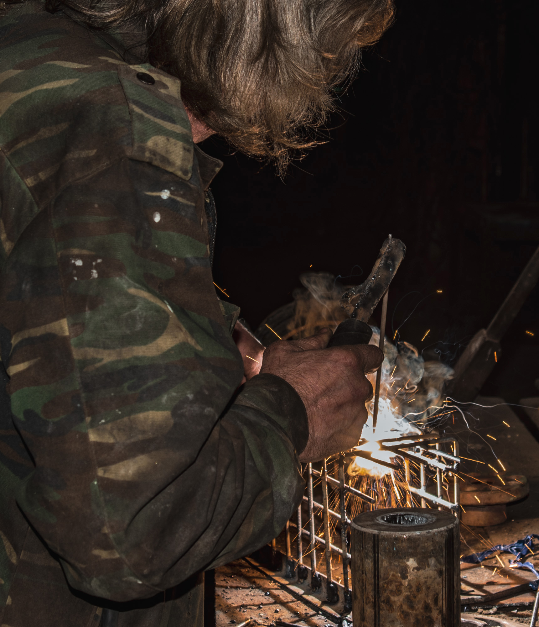 Чтобы поймать одичалого кота прибившегося к производственному цеху пришлось делать клетку с дистанционно закрывавшейся дверцей. На снимке - процесс изготовления клетки...