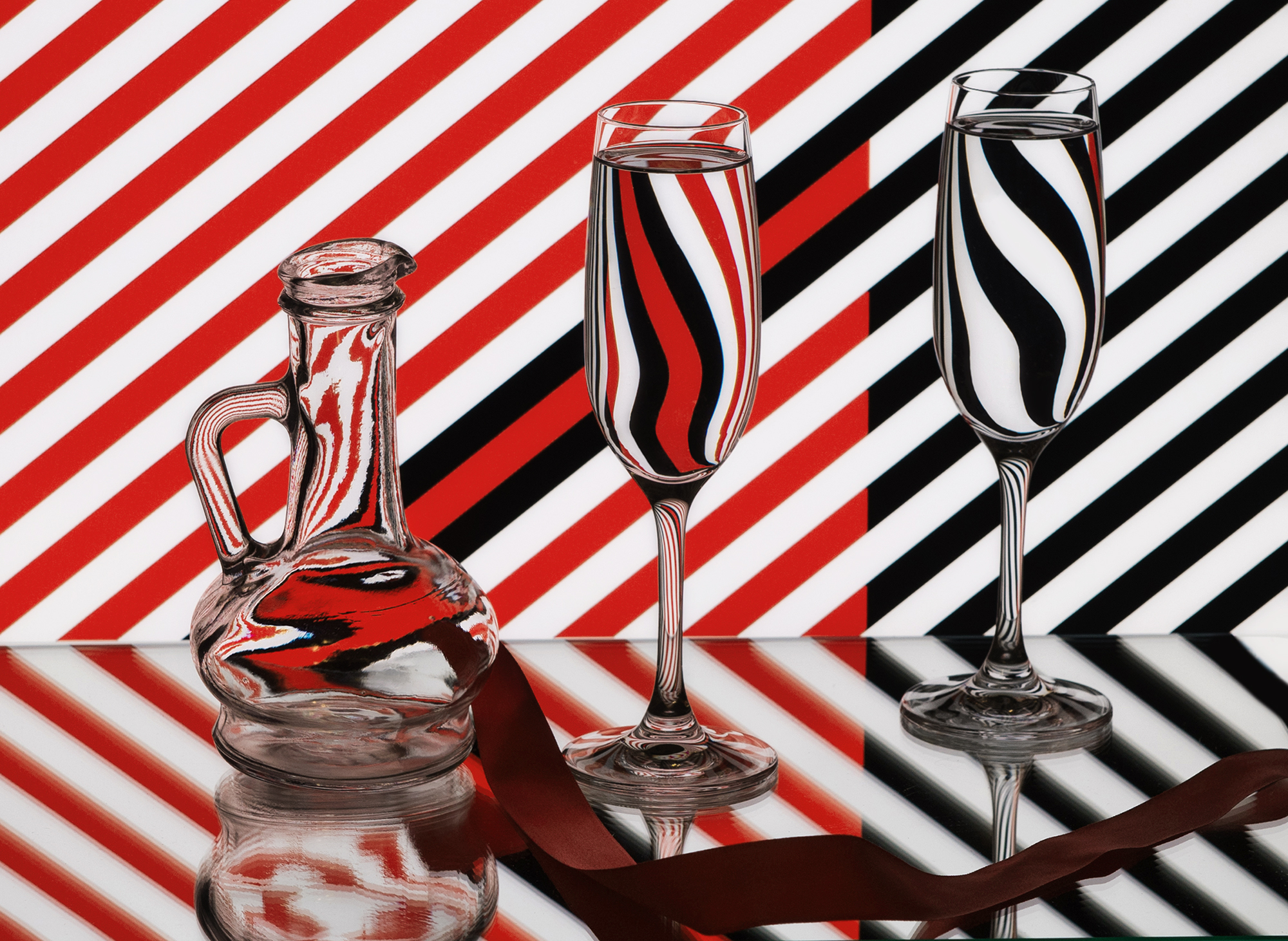 Графинчик даёт такие интересные искажения полосок! В ручке, горлышке - разный рисунок.