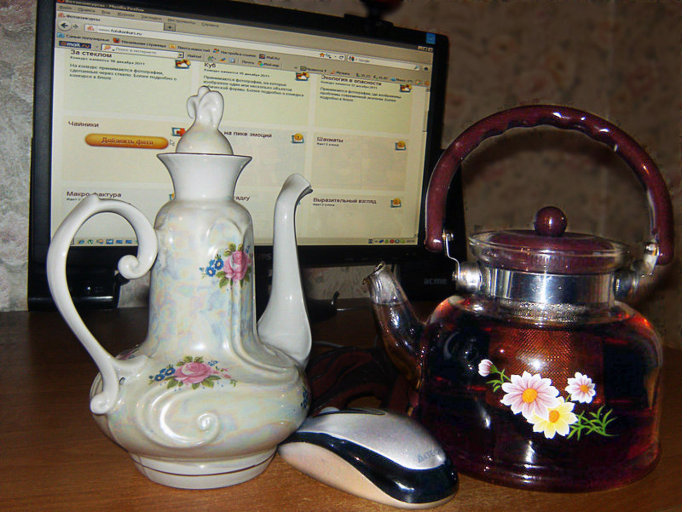 Темновато для чайника и одновременно пестро. Чай, вообще-то, ассоциируется с чем-то светлым, лёгким..:)